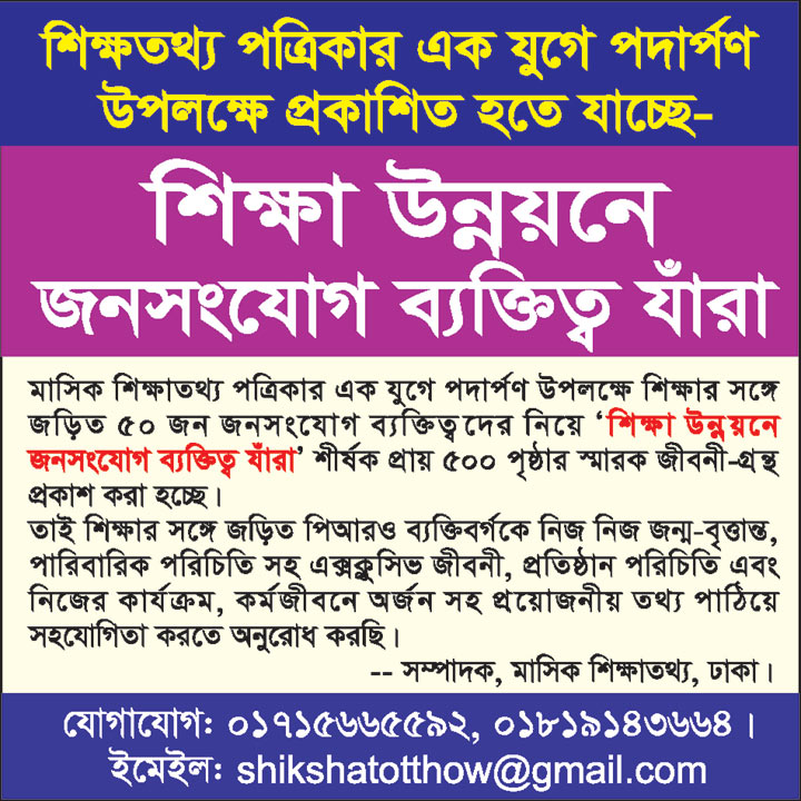 শিক্ষাতথ্য, ঢাকা (০১ ডিসেম্বর,